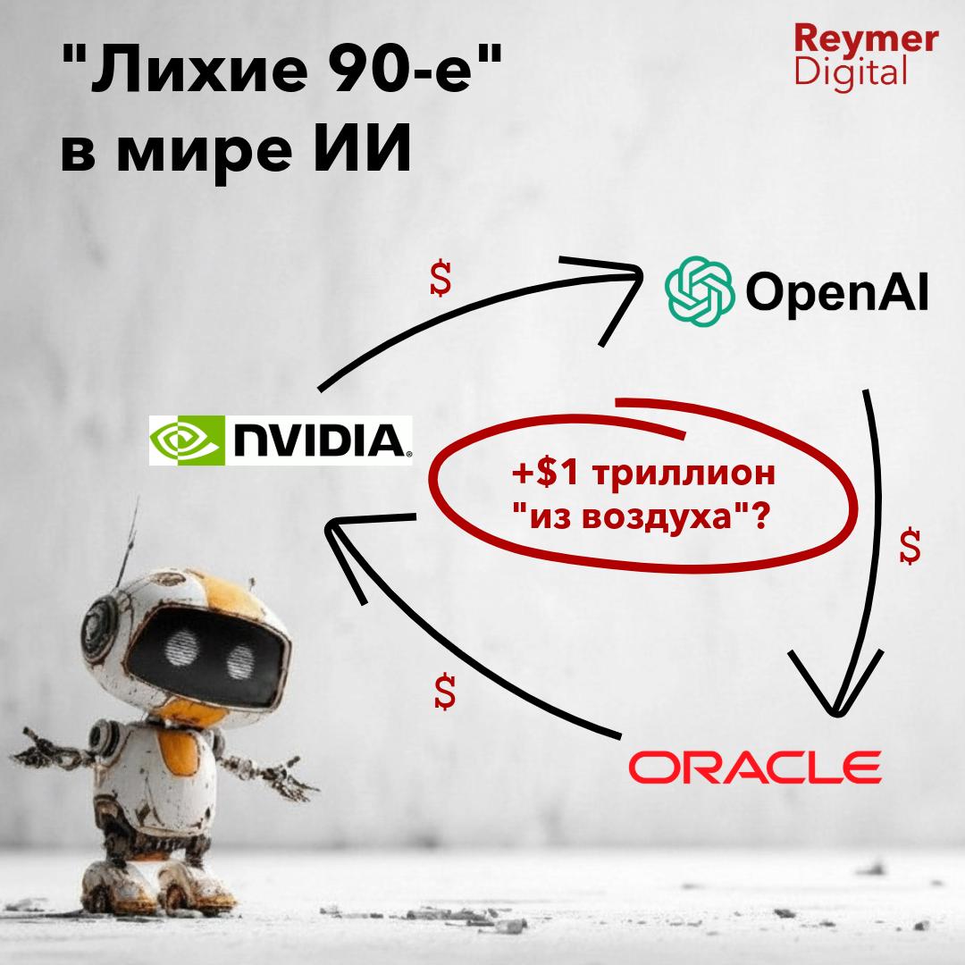 Nvidia платит $100 млрд в OpenAI, OpenAI в Oracle, Oracle в Nvidia. Деньги "прокрутили". Результат - плюс почти $1 триллион в капитализации компаний.