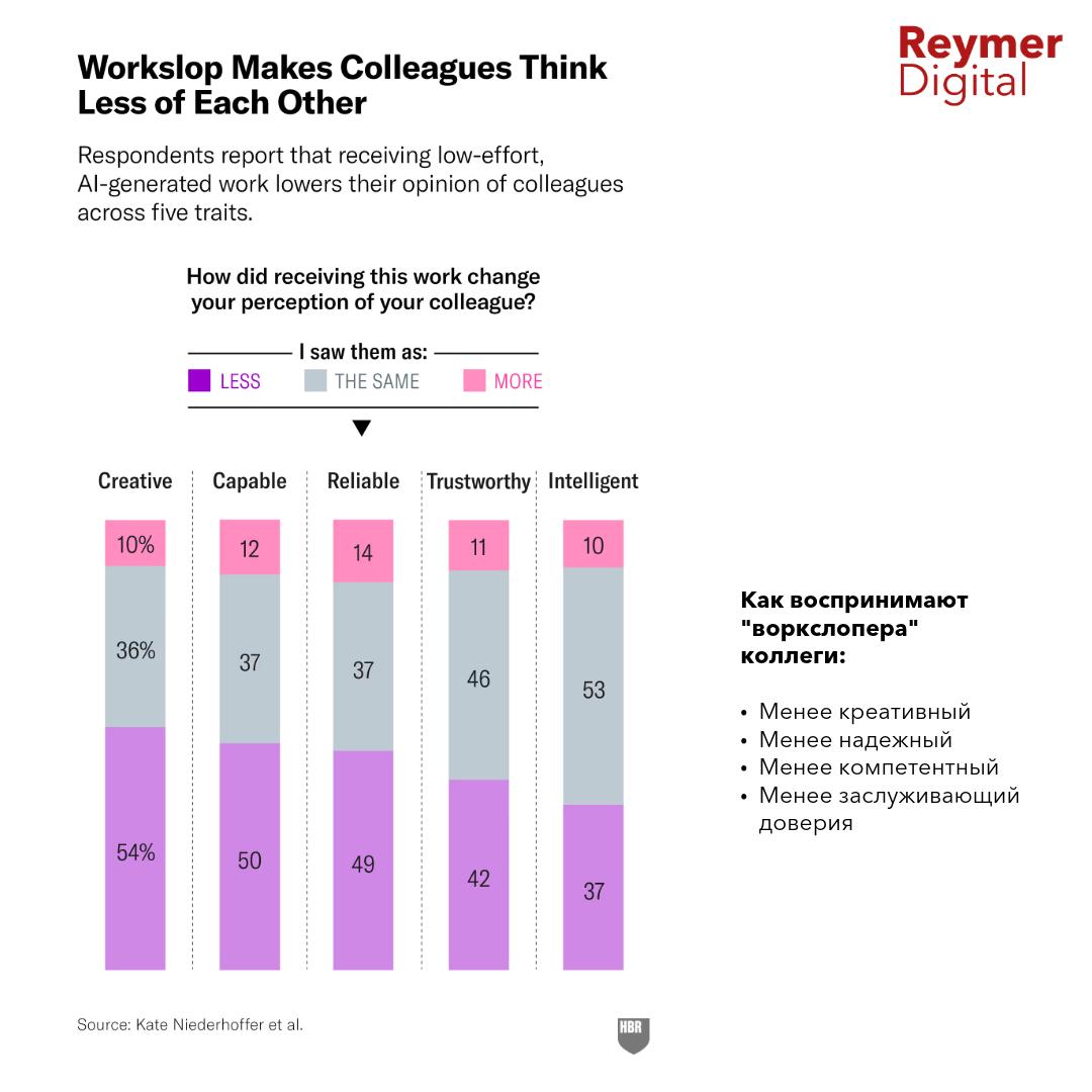 - 41% сотрудников сталкиваются с workslop от коллег