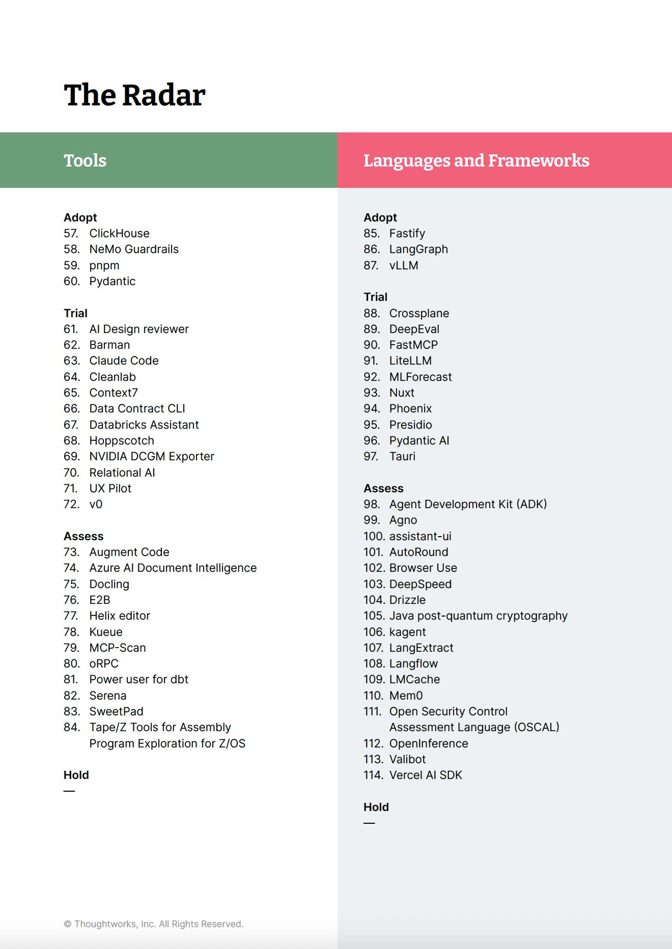 В документе Technology Radar 2025 ещё 100+ технологий, инструментов и практик с оценкой зрелости: что внедрять сейчас, что тестировать, а от чего держаться подальше. Отчет в первом комментарии.