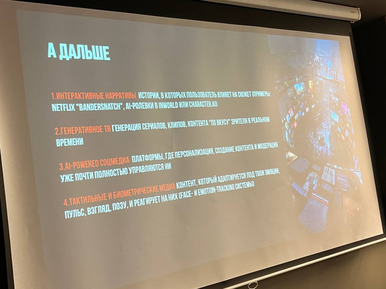 Очень зацепила тема проблем этики и права в ИИ. Если будет шанс оказаться на выступлении Леши Парфуна по новейшим медиа, ни раздумывайте ни секунды. Оно того стоит. Закину несколько слайдов его презентации. А на встрече были еще невероятные примеры видео, а главное, очень крутая дискуссия в зале. Чего только стоит этические вопросы при использовании возможностей ИИ.